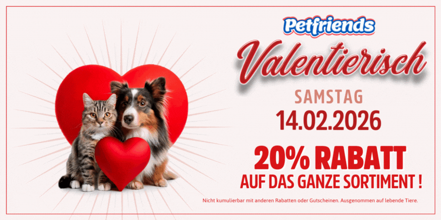 Artgerechte Tiernahrung für Hund, Katze, Vogel und Kleintiere sorgt für starke Abwehrkräfte, mehr Wohlbefinden, und hält das Gewicht in Balance. Leicht verdauliche Kohlenhydrate, natürliche Nährstoffe und viele gute Vitamine unterstützen die Gesundheit Ihrer Tiere. Im Petfriends Tiershop bieten wir Ihnen gesundes Futter für eine ausgewogene Ernährung Ihrer kleinen Freunde. Sie haben die Wahl zwischen Trockenfutter und Nassfutter von etablierten Marken wie Eukanuba, Iams, Schesir oder Trainer. Appetitliche Snacks und feine Leckerli bringen jedes Tier zum Juchzen. Kleintierfutter und knusper-knackige Kräcker erfreuen quirlige Nager, Multivitamine halten agile Vögel fit. Haupt- und Spezialfutter für Fische unterstützt eine vollwertige Ernährung von Aquarienbewohnern. In unserem Online Tiershop entdecken Sie passende Produkte und inspirierende Ideen für das moderne Haustier: Katzentoiletten, Katzenstreu, Katzentüren, alles für Reinigung, Pflege & Hygiene, Käfige, Hundehütten, Spielzeug, beste Produkte für Aquaristik und Terraristik. Petfriends ist Ihr vertrauenswürdiger Partner für gesundes Tiernahrung, Tierzubehör und Haustierbedarf. Bestellen Sie denkbar einfach online, verzichten Sie auf die Schlepperei von schweren Futtersäcken, Einstreu oder Käfigen. Klicken Sie stattdessen: Heute bis 12.00 Uhr bestellt, morgen schon bei Ihnen. Regulär erfolgt die Lieferung innerhalb von 24 Stunden am Folgetag – zuverlässig, sicher, komfortabel. Der Zustelltag für Bestellungen am Freitag ist üblicherweise am folgenden Montag.