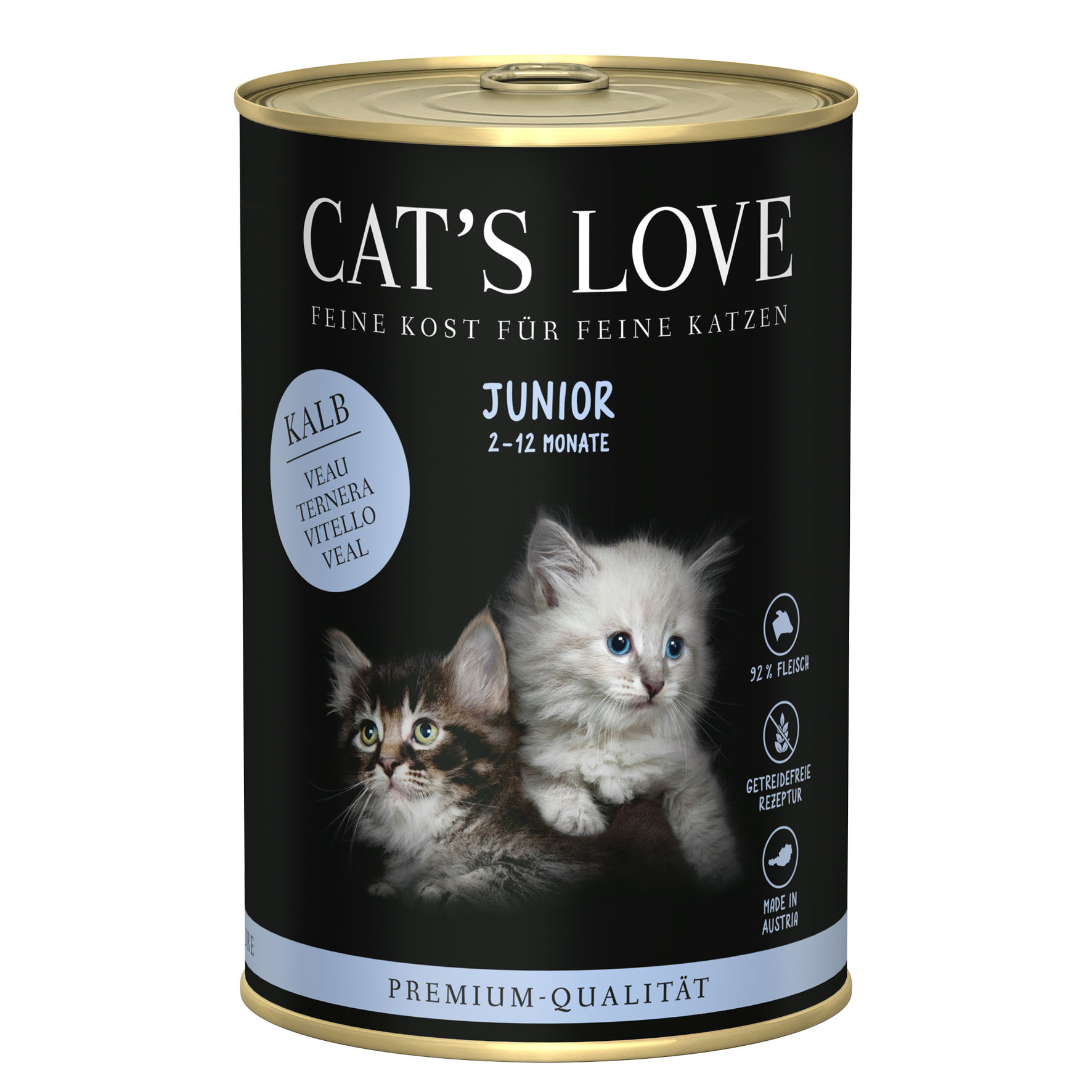 Ob Schmusetiger, Mäusefänger oder Stubenhocker - Ihre Katze verdient eine artgerechte Ernährung, die ihr ein langes, gesundes Leben an Ihrer Seite ermöglicht. Genau das bieten wir Ihnen mit unseren fein abgestimmten Alleinfuttermitteln von CAT’S LOVE. Mit einem hohen Fleisch- oder Fischanteil versorgt jede veterinärmedizinisch entwickelte Sorte die Katze mit genau den Nährstoffen, die sie wirklich benötigt. Und weil die Natur stets das Beste bietet, setzen wir auf rein natürliche Zutaten - ohne Zuckerzusatz und chemische Zusatzstoffe. Mit CAT’S LOVE entscheiden Sie sich für eine artgerechte, getreidefreie Ernährung, die Ihrem Liebling den vollen Geschmack der Natur bietet.