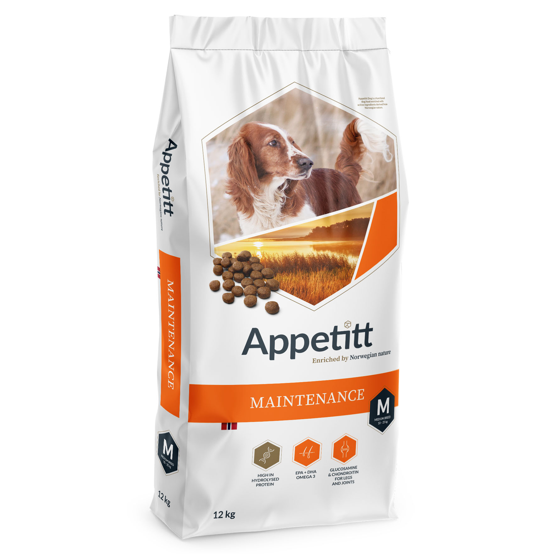 Appetitt Maintenance Medium Breed est un régime complet pour les chiens adultes de races moyennes à partir d'un an. Cet aliment convient aux chiens sans besoins particuliers et ayant un niveau d'activité normal. Par "activité normale", on entend le niveau d'activité des chiens qui sont entraînés 1 à 2 heures par jour sans effort particulier. Cet aliment est riche en protéines d'origine animale et marine faciles à digérer.