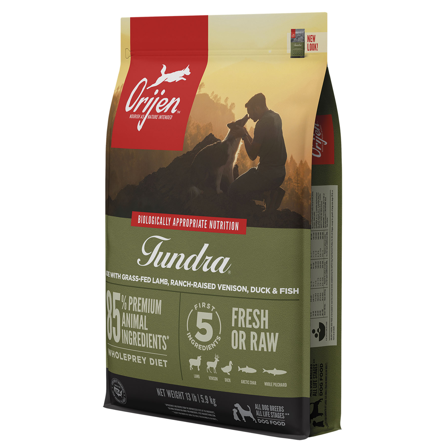 Orijen Tundra avec chèvre fraîche, sanglier, cerf, omble arctique, canard et mouton élevés en liberté est le mélange parfait pour les chiens de toutes races et de tous âges. Ils grandissent et se développent très bien grâce à un régime alimentaire composé d'un mélange de gibier, de poisson et de volaille combiné à de petites quantités de fruits, de légumes et de plantes.