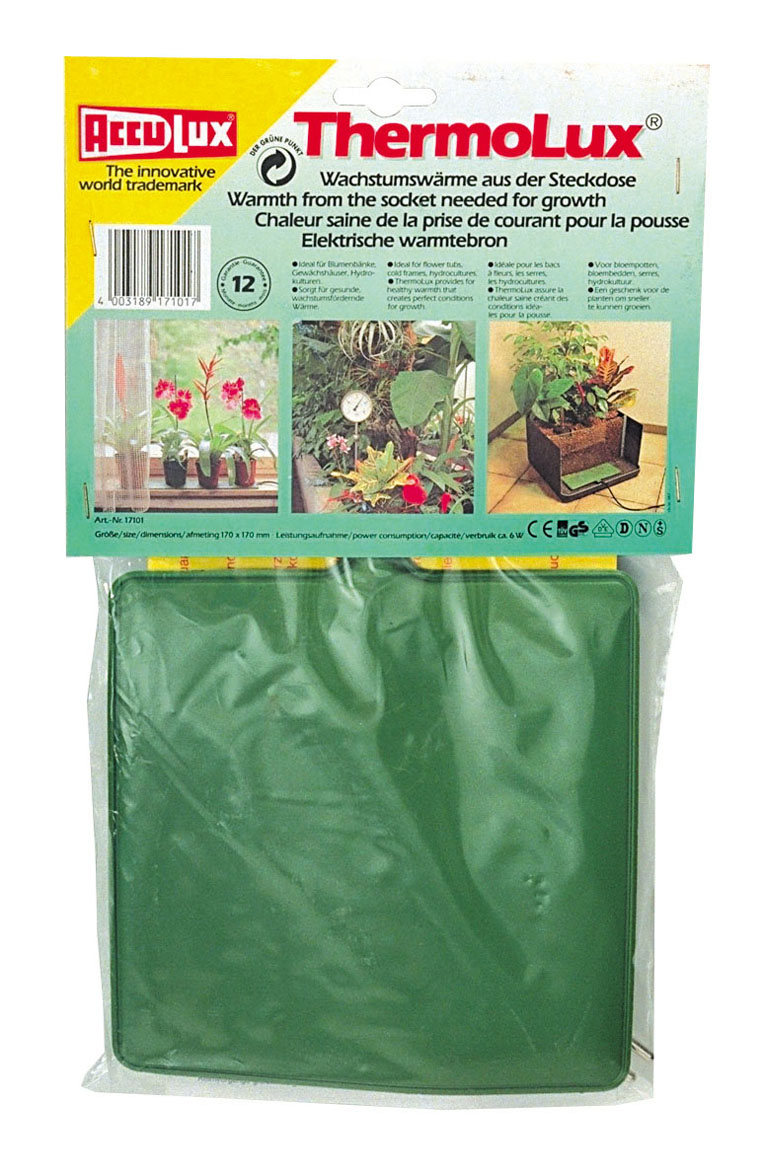 Placez la plaque sur un rebord de fenêtre ou directement dans un récipient hydroponique ou un bol de culture. L'accumulation de chaleur causée par le dessèchement du substrat (sol, culture hydroponique) peut être évitée par un arrosage régulier. La température du sol dépend du volume du pot à plantes et de la température ambiante. Le régulateur de température ThermoLux peut être utilisé pour le contrôle de la température. La température est alors automatiquement maintenue dans la plage souhaitée. Le contrôle de la température n'est suffisamment précis que dans le substrat humide.