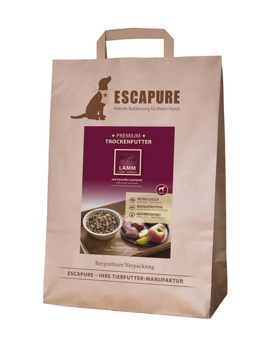 A causa della sua produzione senza cereali, questo cibo premium per cani è perfetto per i cani con intolleranza al glutine. Oltre all'alta percentuale di carne pura, il cibo secco Escapure contiene cumino nero, che ha un effetto positivo sulla salute e sul pelo del tuo cane, e gusci d'uovo che, grazie al loro contenuto di calcio, forniscono un nutrimento ottimale per la struttura ossea e i denti. Arricchito con olio di colza e il suo essenziale acido a-linoleico, il nostro cibo secco rafforza la vitalità e la condizione del tuo cane. Escapure usa anche l'amaranto organico nei suoi prodotti, che è una fonte di cibo potente e ricca di proteine.