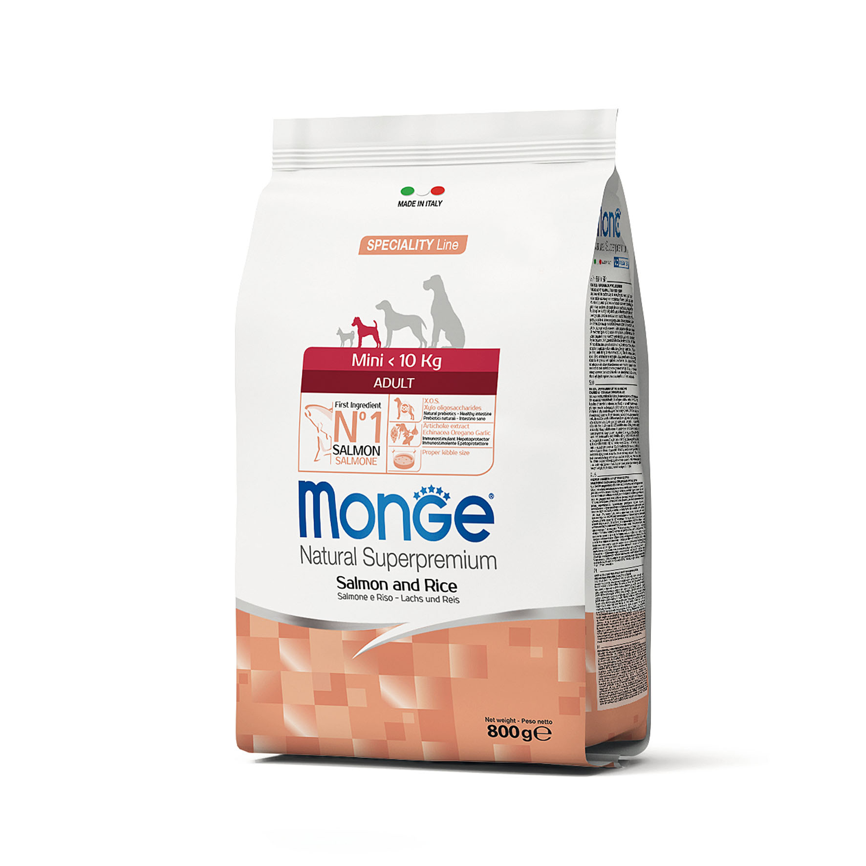 Monge Natural Superpremium Speciality Line Mini Adult mit Lachs und Reis ist ein Alleinfuttermittel für Hunde kleiner Rassen. Dieses Futtermittel unterstützt das Wohlbefinden Ihres Hundes dank seiner hochwertigen Nährstoffe. Es zeichnet sich ausserdem durch eine hohe Akzeptanz aus, da nur eine einzige Quelle von tierischen Proteinen (Monoprotein) verwendet wird. Die Hauptzutat ist Lachs und das Futter ist mit XOS (Xylo-Oligosaccharide) angereichert, der neusten Generation von Präbiotika, welche das Wohlbefinden des Darms unterstützen. Zusätzlich dazu enthält dieses Futter Artischockenextrakt, Echinacea und Knoblauch.