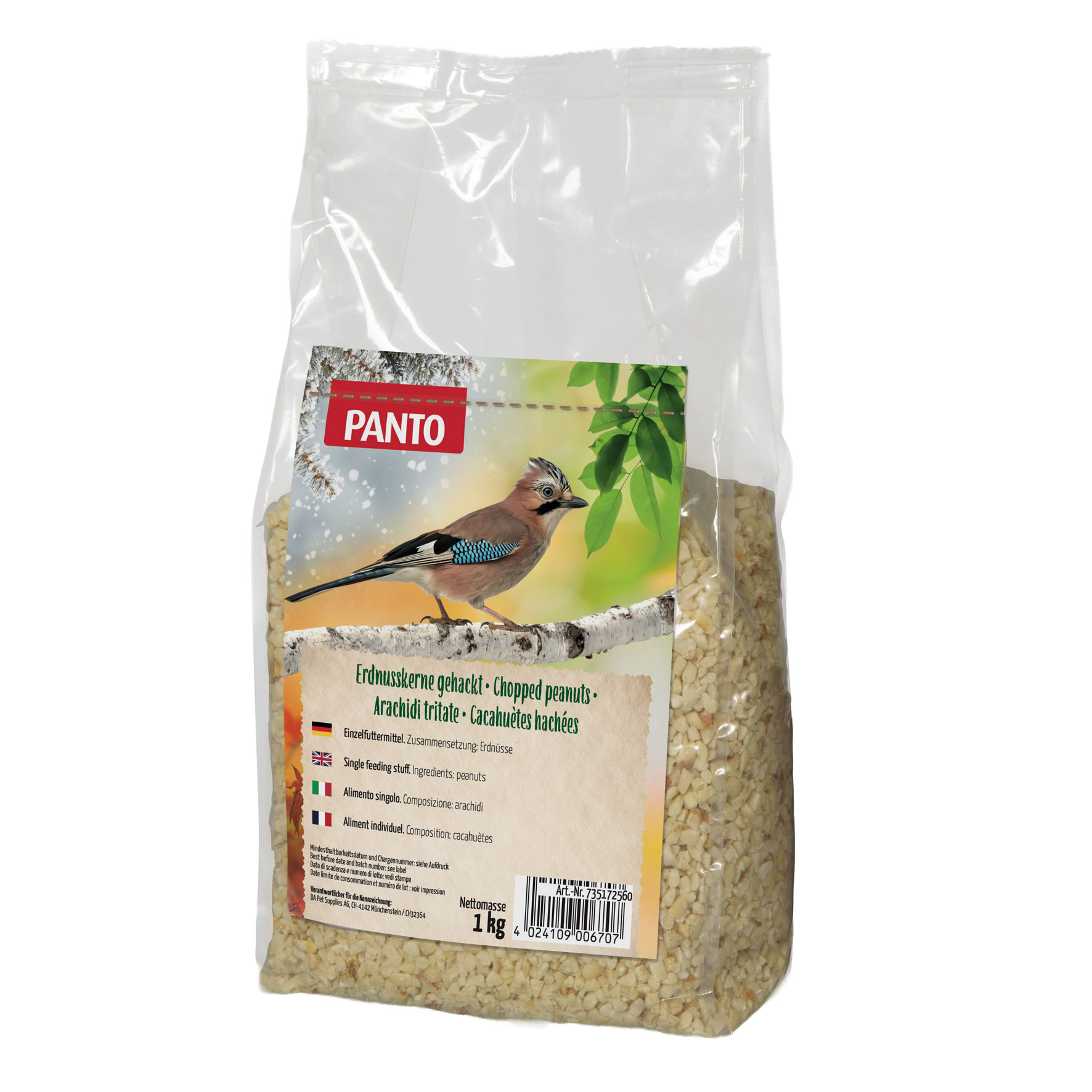 Die Panto gehackten Erdnüsse sind ein hochwertiges Ergänzungsfuttermittel für heimische Wildvögel. Durch die feine Zerkleinerung lassen sie sich besonders leicht aufnehmen und eignen sich auch für kleinere Vogelarten. Erdnüsse liefern wertvolle Fette und Proteine und stellen eine konzentrierte Energiequelle dar.