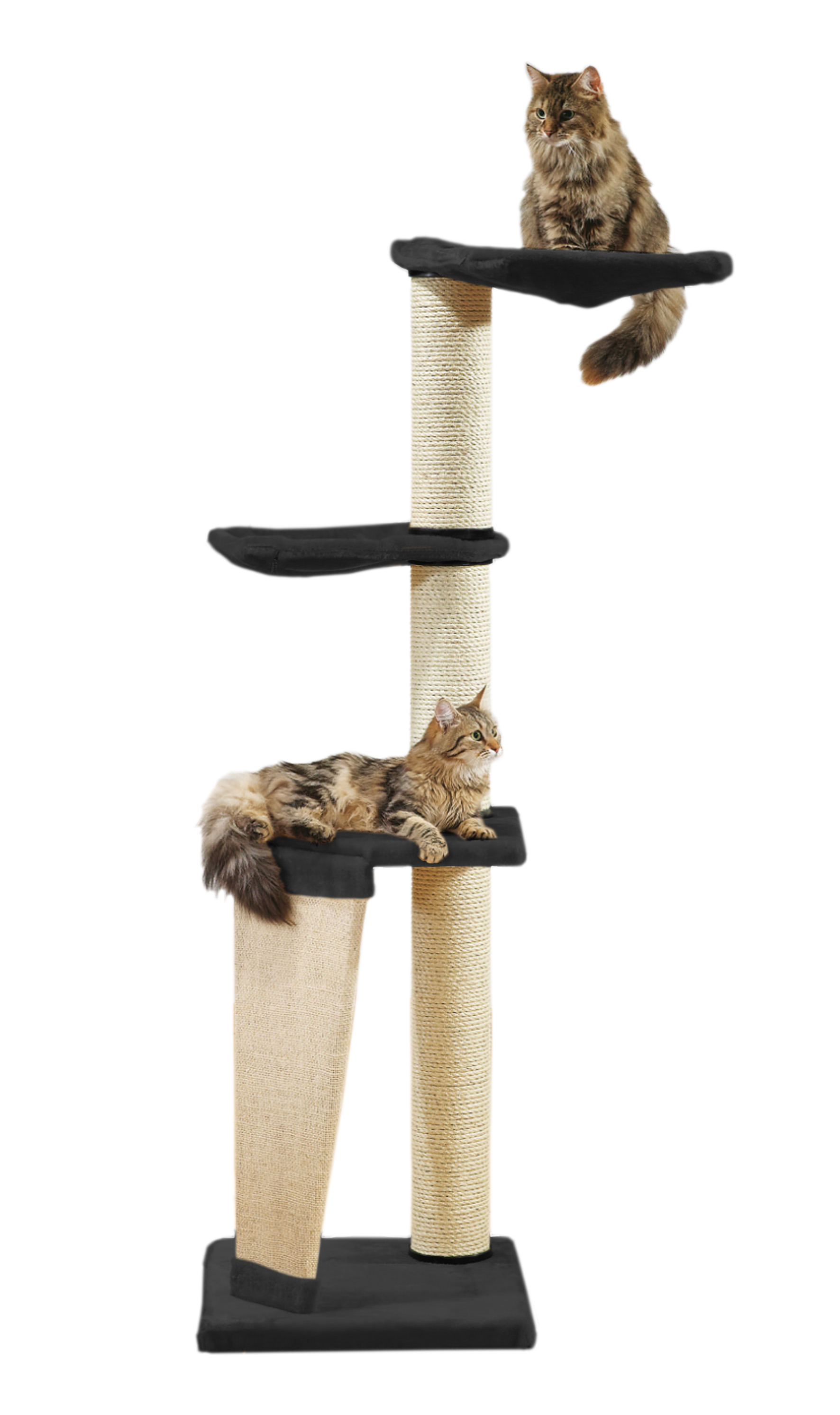 Das Kratzen an den robusten Sisalstämmen dient der Krallenpflege und verhindert, dass Möbel oder Teppiche beschädigt werden. Gleichzeitig sorgt das Klettern auf verschiedenen Ebenen für Bewegung und stärkt die Muskulatur. Höhlen und Liegeflächen bieten gemütliche Ruheplätze, während integrierte Spielmöglichkeiten für Abwechslung und Beschäftigung sorgen.
