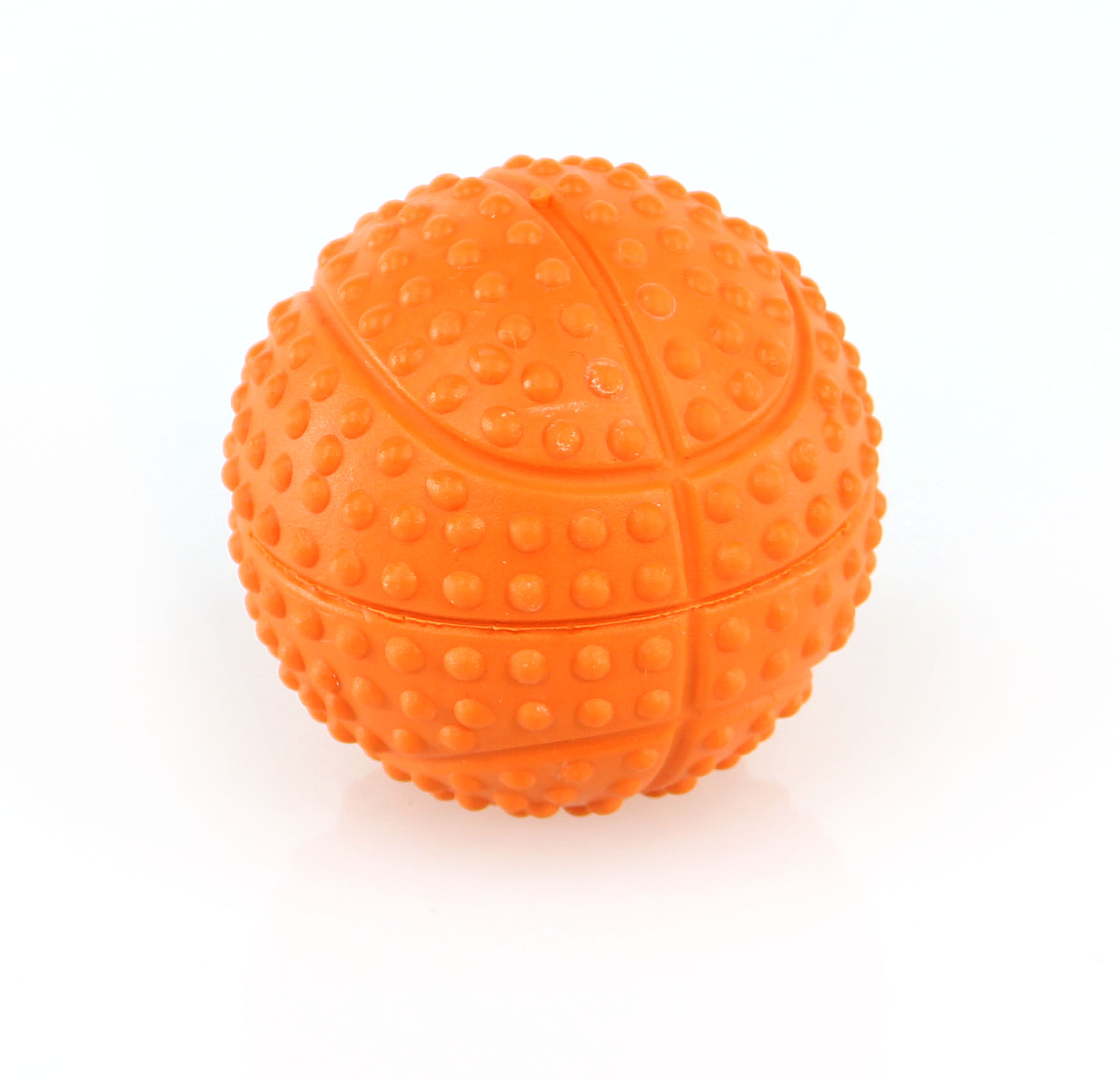 Verschiedene Spielbälle mit Noppen. Sie sind aus Gummi gefertigt und mit Quietscher versehen. Der integriert Quietscher animiert zum unermüdlichen Spiel. An den Noppen werden die Zähne gereinigt und das Zahnfleisch massiert. Zahnhygiene ist sehr wichtig für jedes Tier und trägt zum allgemeinen Wohlbefinden bei. In orange oder gelb. Der Spielball misst ø 9.5cm, die Mini-Bälle ø 5.5cm.