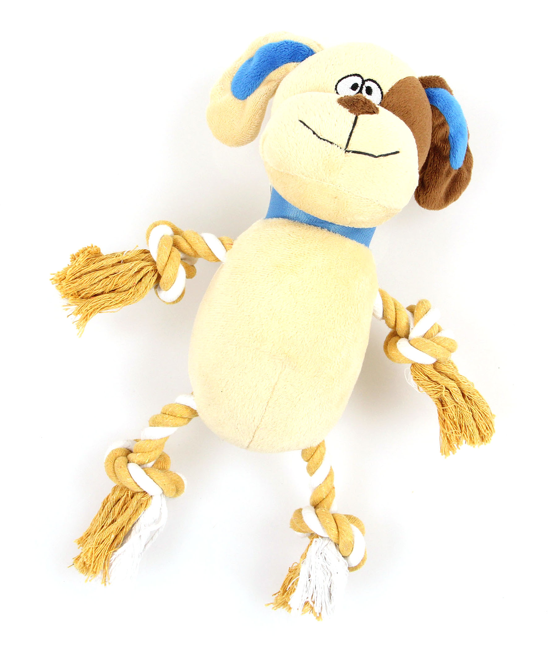 Süsse Plüschtiere in Varianten mit oder ohne Quietscher. Die Tiere haben geknotete Arme und Beine aus Baumwolle. Wer es ruhig mag, wählt ein Tier ohne Quietscher, wer es lieber animiert hat, nimmt ein Tier mit Quietscher. Am Baumwollseil werden die Zähne gereinigt und das Zahnfleisch massiert. Zahnhygiene ist wichtig für jedes Tier und trägt zum allgemeinen Wohlbefinden bei.